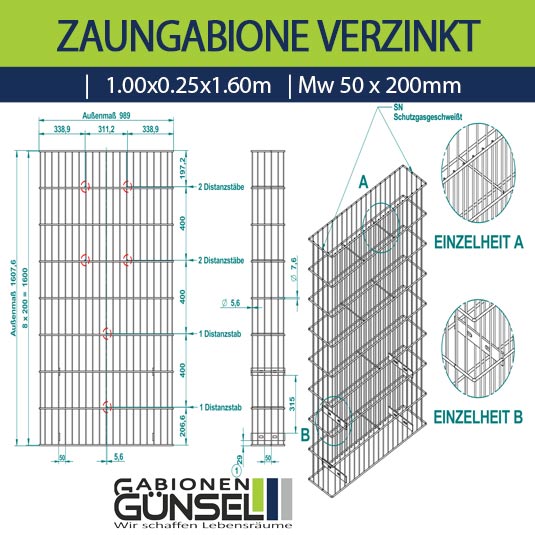 - Drahtgitterbehälter gemäß Zeichnung: